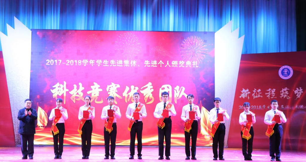 12月19日下午,以“新青年风华正茂·新征程筑梦前行”为主题的2017-2018学年学生先进集体、先进个人颁奖典礼在天佑会堂隆重举行。校长王化深,党委书记魏旺强,副校长、副书记张长铎,党委副书记魏炜出席本次大会,各院系、各职能处室负责人,教师代表及部分学生参加本次大会。