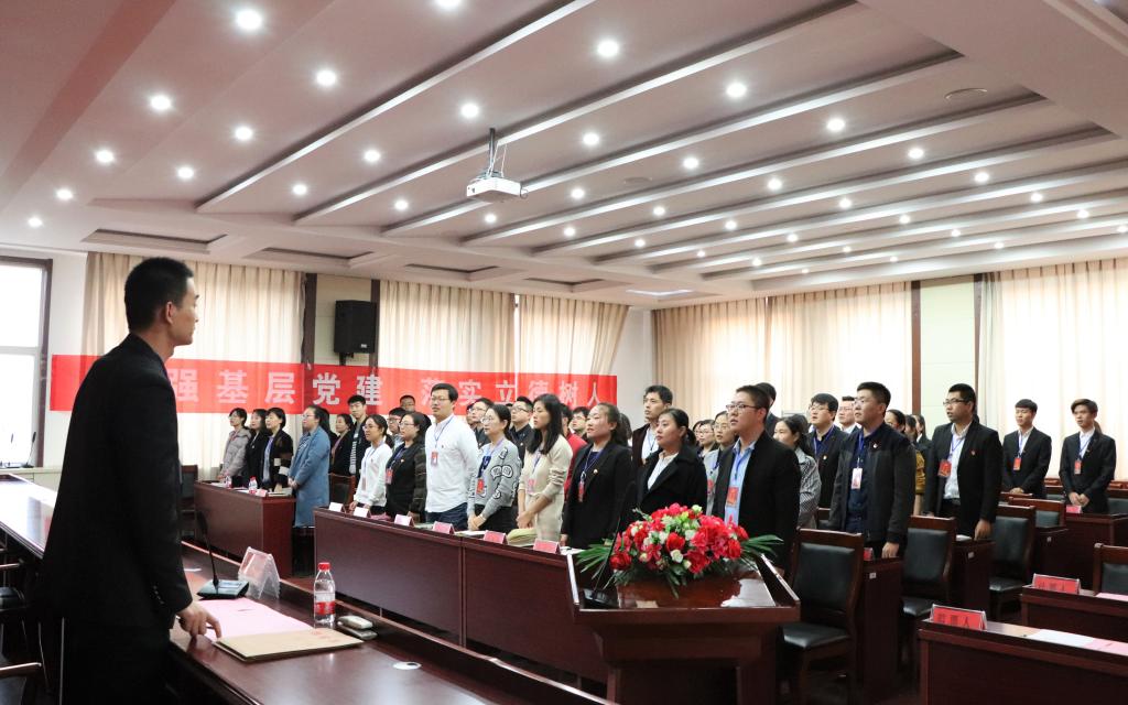 图为经管学院党总支全体党员唱国歌