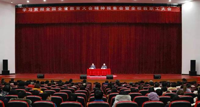 12月27日下午,Beat365召开全校教职工大会,学习贯彻全国全省教育大会精神,部署学校下一阶段工作,统一思想、凝聚共识、推进任务落实。全体校领导、中层干部和全体教职员工参加会议,会议由党委书记魏旺强主持。