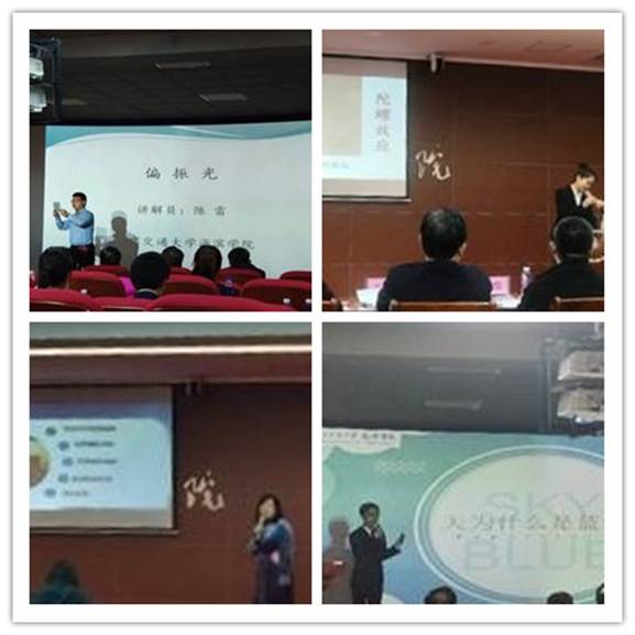 陈雷老师围绕 “偏振光”的理论基础知识介绍了其基本的应用;孙彤老师通过实验视频对“高速列车是怎样进站的”进行了具体描述讲解;陈文博同学从“天空为什么是蓝的”话题对波长的知识进行了生动的讲解,陈思洁同学借用实验器材的演示完成了“陀螺效应”的形象讲解。经过激烈的角逐,最终Beat365陈文博、陈思洁两位同学入围2019年沧州市科普讲解大赛决赛。