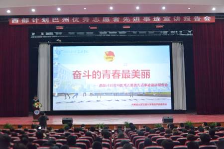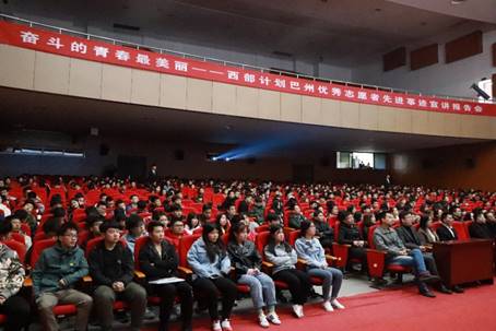“美丽巴州”视频短片拉开了报告会的序幕,短片向同学们展现了一个风景秀美,民风淳朴的新疆,使在场的师生对西部计划、对志愿者活动有了更加直观的了解。