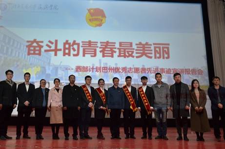 此次前来的报告团嘉宾有:新疆巴州团委党组书记、团委书记车恒,河北省青年志愿者行动指导中心李欣茹,新疆巴州团委项目负责人董岩峰,共青团沧州市委学少部部长孙文超以及四名优秀志愿者代表。