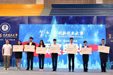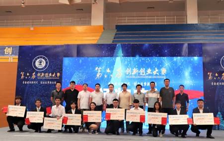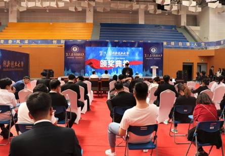 主持人宣布第六届创新创业大赛比赛结果。璀璨航拍有限公司取得桂冠,海滨科创生物技术有限公司、梦拓电子商务有限公司分获亚军和季军,其余参赛团队均获优秀奖。