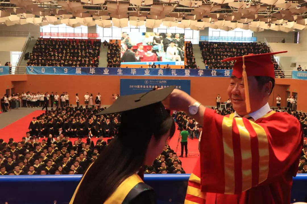 黄骅市人民政府副市长张桂云代表黄骅市委市政府对2019届毕业生致辞,她讲到,四年来黄骅市政府时刻关注着同学们的成长,希望毕业生们志存高远,始终保持奋斗的激情。不忘初心,牢记使命,在最美的年华里树立远大理想、练就过硬本领,真正成为中华民族伟大复兴的先锋力量。