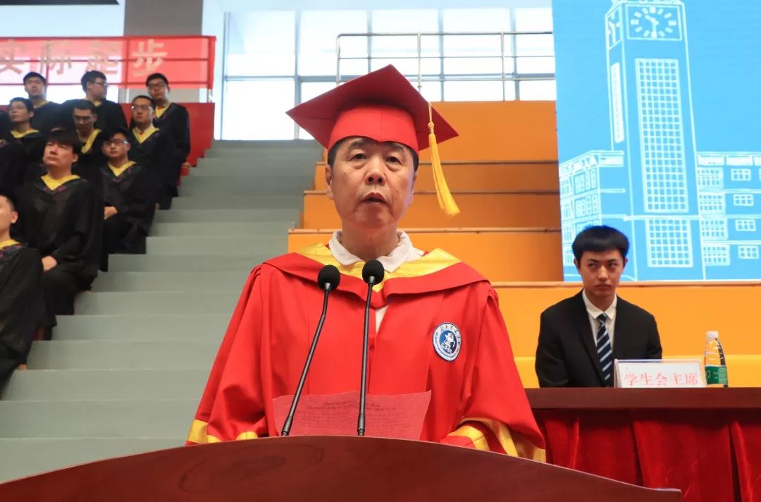 院长王化深教授发表讲话。他首先表达了对全体毕业生的衷心祝福和对全体教师和家长的感谢以及对出席毕业典礼各位领导的热烈欢迎。同时他表达了自己“家有儿女初长成”的欣喜,他回忆起2015年7月来到海滨学院准备迎接他的第一批学生,作为“同路人”,他对大家有着特殊感情。之后,王化深院长从“做新时代的追梦人,要有大格局”,“做新时代的追梦人,要脚踏实地”,“做新时代的追梦人,要敢于奋斗”三个方面对毕业生们提出殷切期望,他希望大家要不负时代重托,把握机遇,砥砺前行,勇做新时代的追梦人。最后,他对海滨学子进行了美好的祝愿,并嘱咐同学们常回家看看。