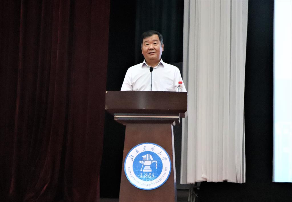 课堂伊始,王校长以幽默风趣的语言向同学们介绍自己,接着王校长结合自身经历,从“大学是什么”,“在大学里能做什么”两个问题切入,与同学们进行深入探讨,告诉同学们大学与基础教育不同,大学是学习独立思考,确定人生观、价值观、世界观的地方。