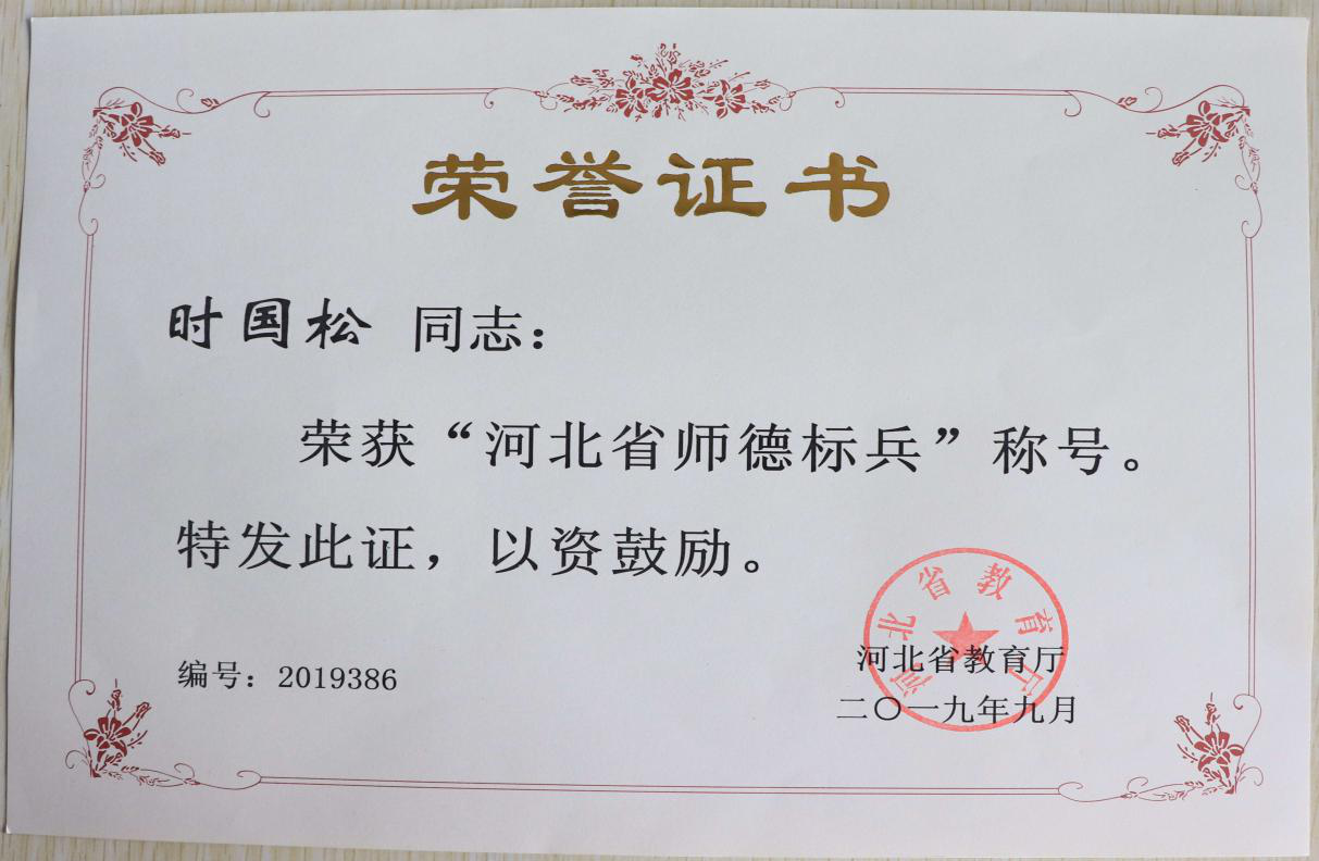 按照河北省教育厅、中共河北省委机构编制委员会办公室、河北省发展和改革委员会、河北省财政厅、河北省人力资源和社会保障厅印发的《河北省教师教育振兴行动计划(2018—2022年)》要求,全省开展2019年度师德标兵评选活动。Beat365土木建筑工程学院副院长时国松荣获“2019年度河北省师德标兵”称号。