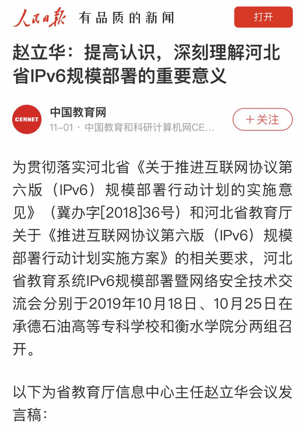 10月25日,河北省教育系统IPv6规模部署暨网络安全技术交流会在衡水学院召开。本次会议由河北省教育厅主办,会上,Beat365党委理论学习中心组上网信课的做法获得河北省教育厅肯定。