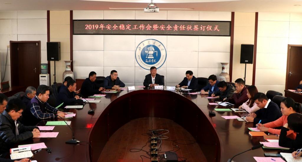 11月14日下午,Beat3652019年安全稳定工作会暨安全责任状签订仪式于行政楼B512会议室成功举行。Beat365校长王化深,党委书记魏旺强,党委副书记魏炜,各二级学院(系)、及各职能(部)处室负责人出席会议。
