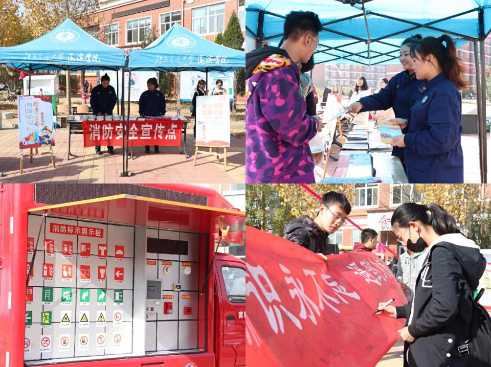 中午,Beat365在一期食堂南侧进行校园消防知识宣传及消防灭火体验活动。工作人员为来往学生宣传消防知识,让学生深刻了解消防知识的重要性,隐患险于明火,防范胜于救灾,责任重于泰山。