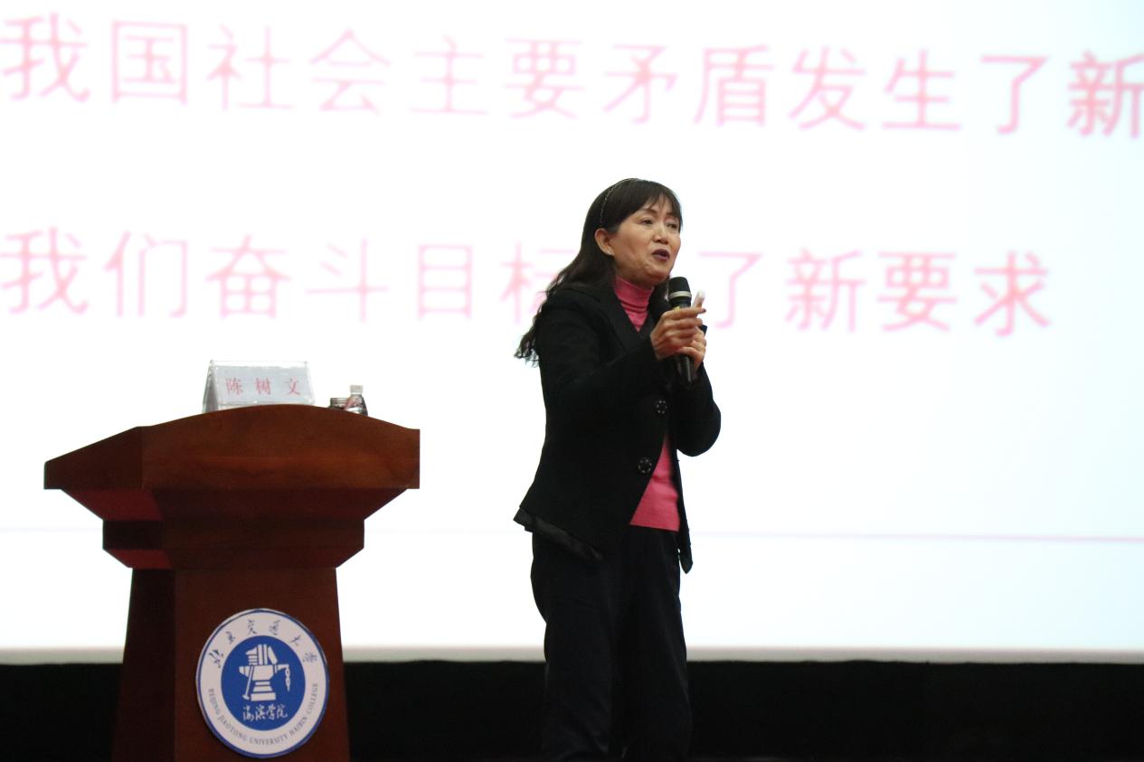 陈树文教授以《不忘初心、牢记使命—坚定理想信念》为题,首先以“不忘初心、牢记使命”提出的时代背景为导入,列举香港顺利回归等历史事件,指出我国正面临着百年未遇的新世情、中国特色社会主义进入新时代的新国情以及全面从严治党的新党情。随后,陈树文教授为在座教职工讲述了中国共产党的发展历程、长征路上可歌可泣英雄人物事迹,使在座教职工深感中国革命胜利来之不易。陈树文教授指出不忘初心就是要牢记使命、就是要坚守政治灵魂、就是不忘人民。最后,陈树文教授以“牢记使命,担当时代重任”为出发点,为大家讲述了当代贯彻“不忘初心、牢记使命”精神的先进事迹,并鼓舞大家要勇于担当时代重任,全体党员同志一定要永远与人民同呼吸、共命运、心连心,永远把人民对美好生活的向往作为奋斗目标,以永不懈怠的精神状态和一往无前的奋斗姿态,继续朝着实现中华民族伟大复兴的宏伟目标奋勇前进。在场教职工无一不被陈教授精彩的讲述所感染,部分受访教职工表示听完本次讲座深感中国革命取得的伟大胜利来之不易,今后必将牢记共产党员初心与使命,为新时代中国特色社会主义建设贡献一己之力。