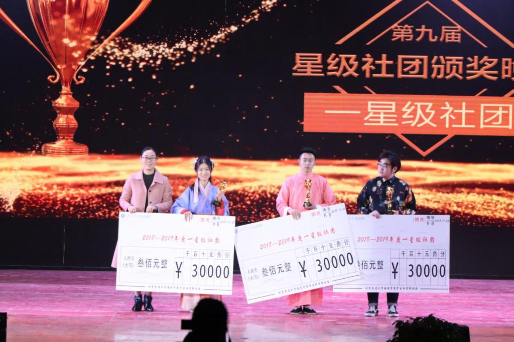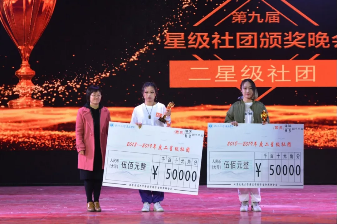 在此次星级社团颁奖晚会中,北海音乐协会摘得“三星级社团”桂冠,KO舞社、KGS街舞社荣获“二星级社团”称号,相声社、茶艺社、裳华汉服社获得“一星级社团”称号,八一协会、航模协会、MSK舞社、书法绘画社四个社团荣获“优秀社团”,吉喆、金艺雪两位同学荣获“优秀社长”。