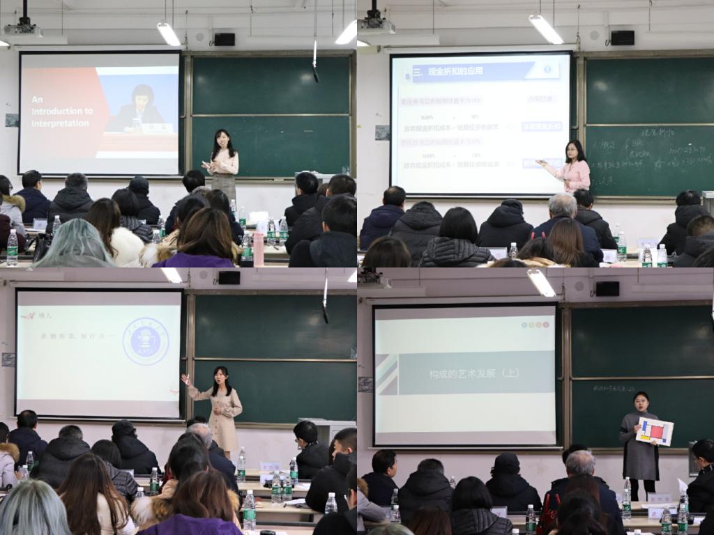 中日同形异义词、口译、消费者均衡、器乐欣赏、Food and Health、College Success Made Easy……13名非理工组参赛教师走进学生、了解学生,利用角色扮演让学生参与到课堂之中,让学生主动探索知识。参赛教师沉着冷静、落落大方,用饱满的热情和富有感染力的语言出色完成了比赛,让观摩师生感受青年教师活力的同时,也领略到了各学科独有的魅力。