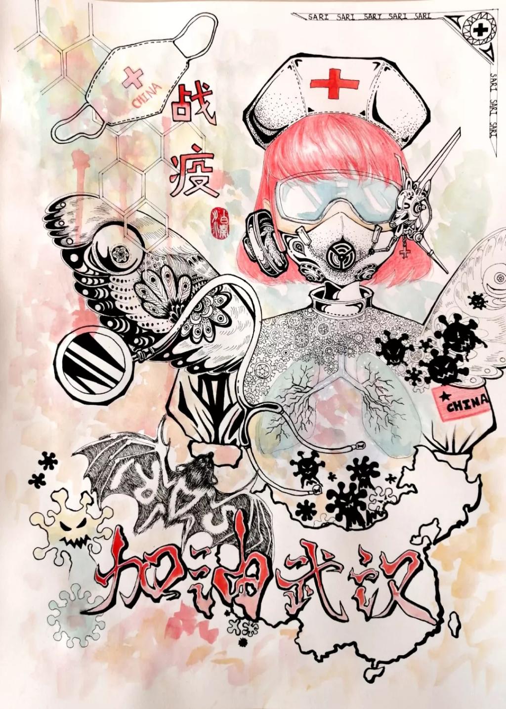 同时,Beat365机械与动力工程学院也积极响应号召2019级学生,用文艺精神凝聚抗疫力量,以画笔与全国人民并肩作战,向奋战在抗疫一线的勇士们致敬!