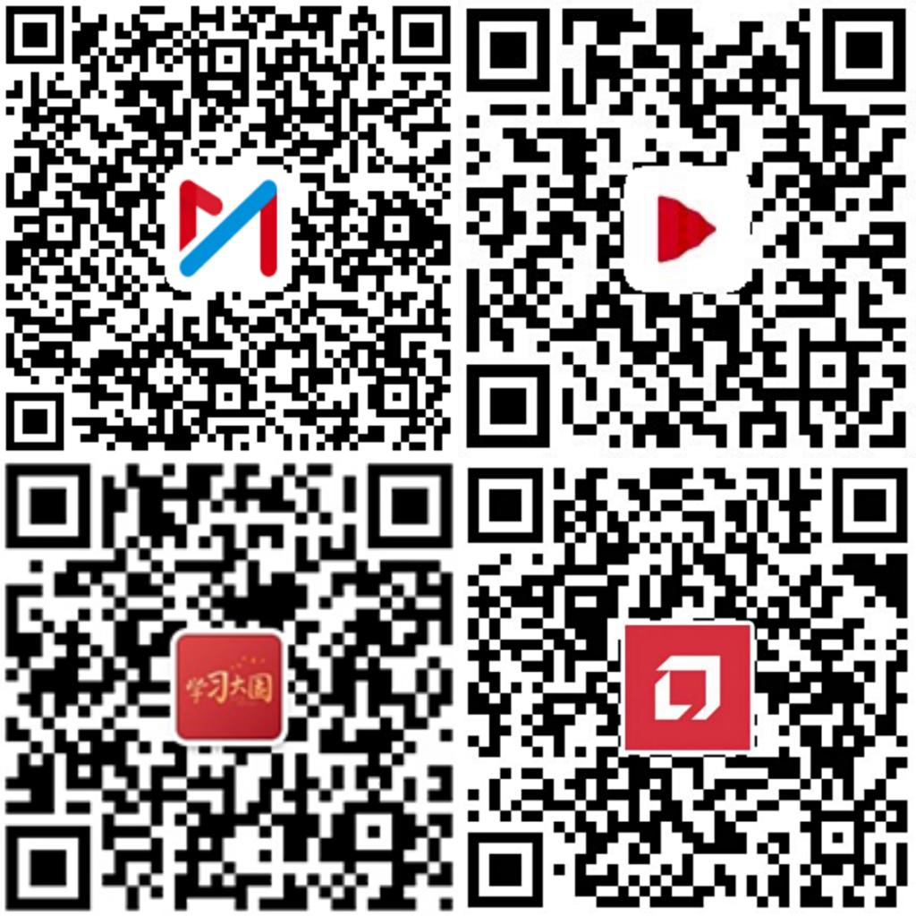 咪咕视频下载二维码、人民视频下载二维码、关注“学习大国”公众号、领导留言下载二维码