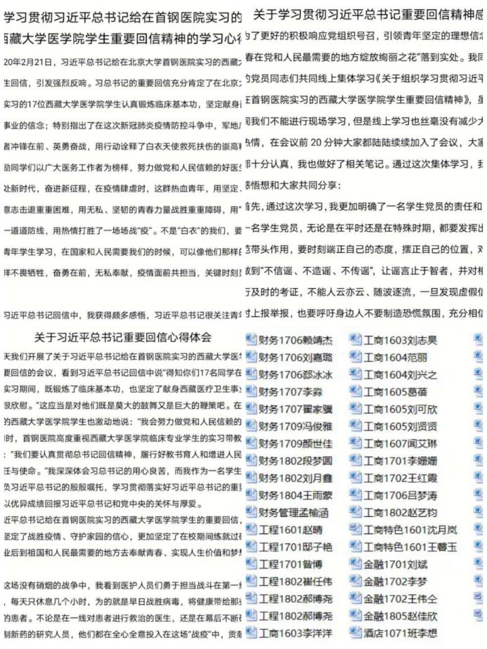 为响应学校学习习近平总书记给在首钢医院实习的西藏大学医学院学生的回信精神,培养社会主义核心价值观,坚定对马克思主义的信仰,弘扬“抗疫精神”,特此Beat365经济管理学院党总支学生党支部组织学生党员以云共享的形式,开展以“悟回信 学精神 练本领 做贡献”为主题的线上学习活动。