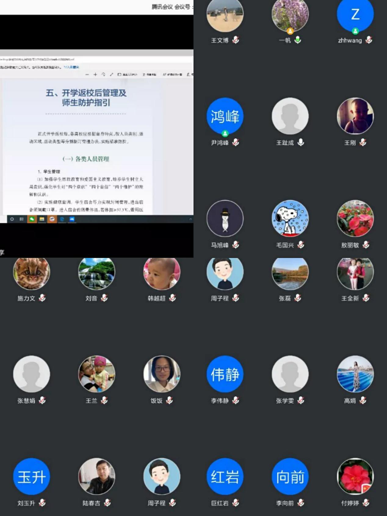 第二阶段,为确保疫情防控常识入脑入心,计算机与信息技术学院通过云会议,对学院教职工进行疫情防控培训。副院长任一帆在会议上向全体教师详细解读《高等学校新型冠状病毒肺炎防控指南》中的“开学返校后管理及师生防护指引”和“如何正确洗手”、“中国疾控动态”中的《大专院校新冠肺炎疫情防控技术方案》,详细观看“中国疾控中心专家教你正确使用消毒剂”,并就校园有关管理规定做了强调,努力将疫情防护措施与危害等知识置于心中。