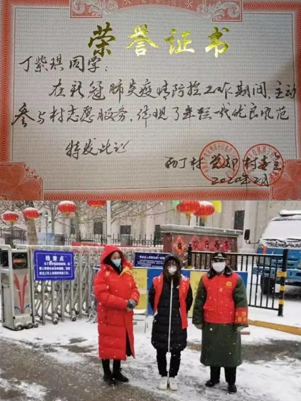 商英1801班丁紫琪同学深感疫情的逐渐严重,于是志愿投入到疫情防控中,参加路口值班工作。通过此次志愿工作,丁紫琪感受到了人民对于国家的信任、感受到了中华民族是一个团结又有力量的民族。西丁村村委会特此发来荣誉证书,对丁紫琪同学疫情期间的志愿服务工作给予充分肯定。