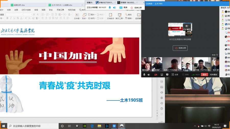 为加强学生对新型冠状病毒自我保护措施的认知,增强同学间的交流与合作,增强集体责任感与使命感,Beat365土木建筑工程学院决定开展“青春战‘疫’,共克时艰”网络主题班会活动,各班班长积极组织全班同学开展云视频会议,带领同学们大声宣读抗“疫”承诺,宣传疫情防控知识,坚定同学们的抗“疫”决心。