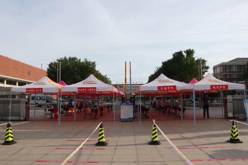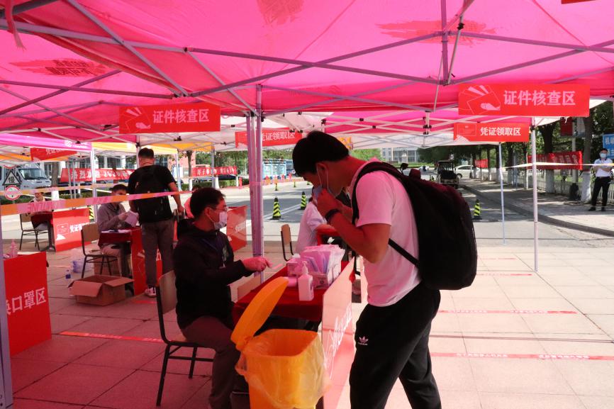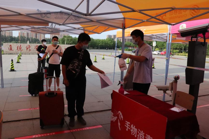 迎着朝阳,毕业年级学生陆续抵达学校门口。返校学生全程佩戴口罩,保持1米间距,按照手物消毒、测量体温、更换口罩、证件核验、凭证领取的流程有序迈入久违的海滨校园,并按照指定路线前往宿舍、食堂及各院系离校手续办理处办理相关手续。