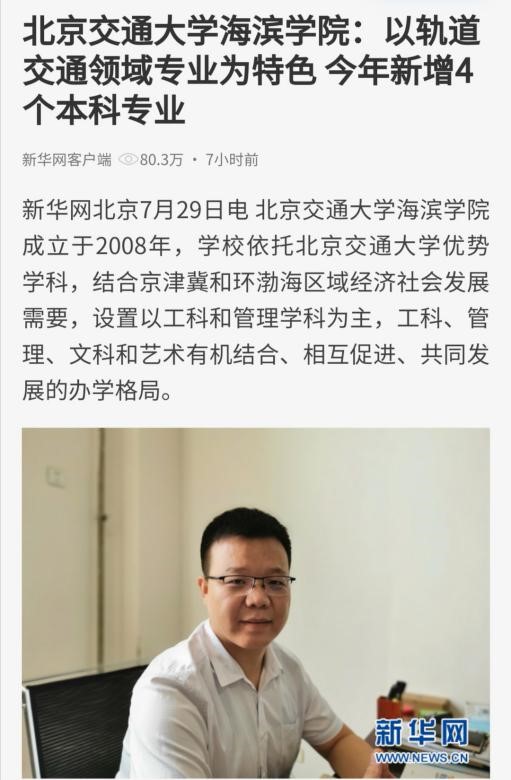 北京交通大学海滨学院:以轨道交通领域专业为特色 今年新增4个本科专业
