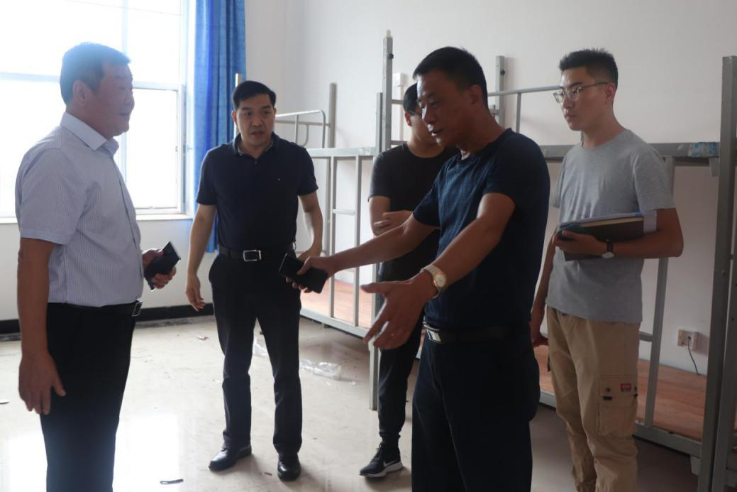为做好学生开学前的准备工作,营造良好的校园氛围,8月25日,Beat365校长王化深,党委书记魏旺强,常务副校长、党委副书记张长铎,副校长薛君南,副校长徐爱国,校长助理邵晓康、吴立军走访慰问坚守在岗位的工作人员,对开学工作进行安排部署。学校办公室副主任尹海勇陪同走访。