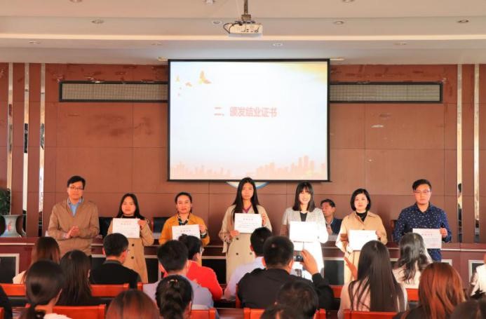 校长助理吴立军为辅导员和行政管理教师代表颁发结业证书