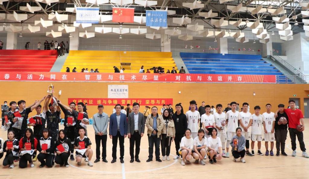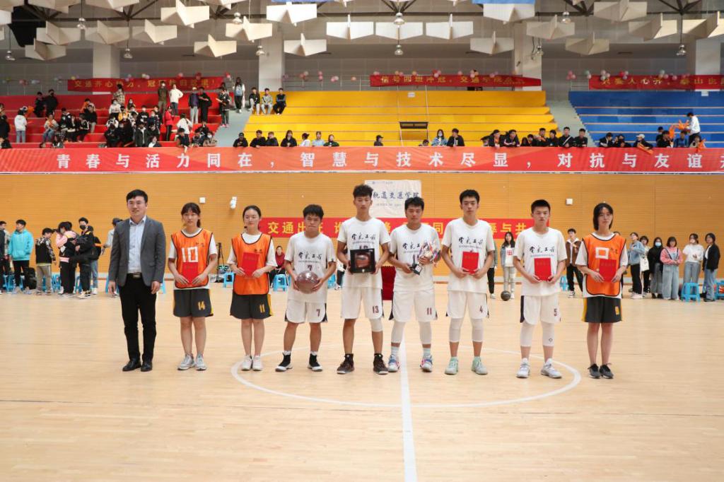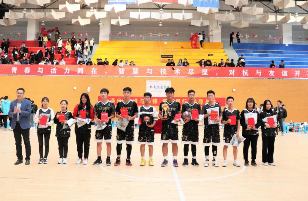 校长助理吴立军为篮球赛冠军轨道交通学院获奖队员颁奖