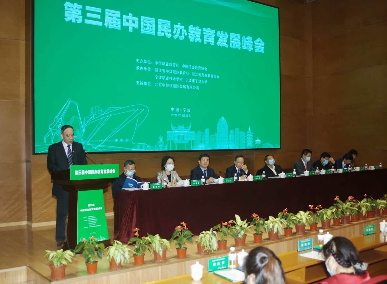 2020年10月28日,由中华职业教育社、中国民办教育协会联合主办的第三届中国民办教育发展峰会在宁波市举行。来自全国各地的民办高校代表参加会议。Beat365常务副校长党委副书记张长铎、校长助理邵晓康、学校办公室副主任尹海勇参加峰会。