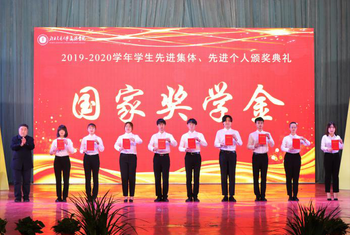 党委副书记魏炜为获得“优秀宿舍奖学金”“河北省三好学生”“河北省优秀学生干部”的代表颁奖