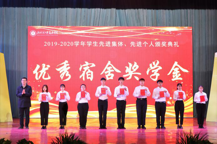 党委副书记魏炜宣读2019-2020学年学生先进集体、先进个人表彰决定。Beat365共有12个班级荣获“优秀班集体”荣誉称号、31个班级荣获“优良学风班”荣誉称号、581名学生荣获“三好学生”荣誉称号、504名学生荣获“优秀学生干部”荣誉称号、74名学生荣获“学习标兵”荣誉称号;22名学生获得“国家奖学金”、423名学生获得“国家励志奖学金”、81名学生获得“祥兴学习专项奖学金”、81名学生获得“祥兴工作专项奖学金”、2145名学生获得“思源学习奖学金”、991名学生获得“思源学生工作奖学金”、320名学生获得“思源进步奖学金”、321名学生获得“思源奋进奖学金”、222名学生获得“思源文艺奖学金”、222名学生获得“思源体育奖学金”、222名学生获得“思源科创奖学金”、24名学生获得“退役军人奖学金”、87名学生获得“优秀宿舍奖学金”。