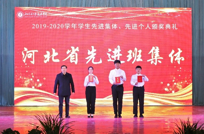 党委书记魏旺强为获得“河北省先进班集体”“优秀班集体”“优良学风班”的代表颁奖