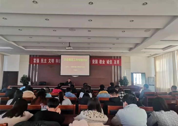 讲座初始,北京交通大学保卫处处长丁鹏玉提到,各高校教师在从事育人工作中一定要有情怀和责任心,辅导员既是学生爱的守护者、专业的引导者,也是学生的舞台搭建者、理论的探索者。丁处长从安全维度强调了开展安全稳定工作时按照“谁主管,谁负责;谁使用,谁负责”工作原则的重要性。