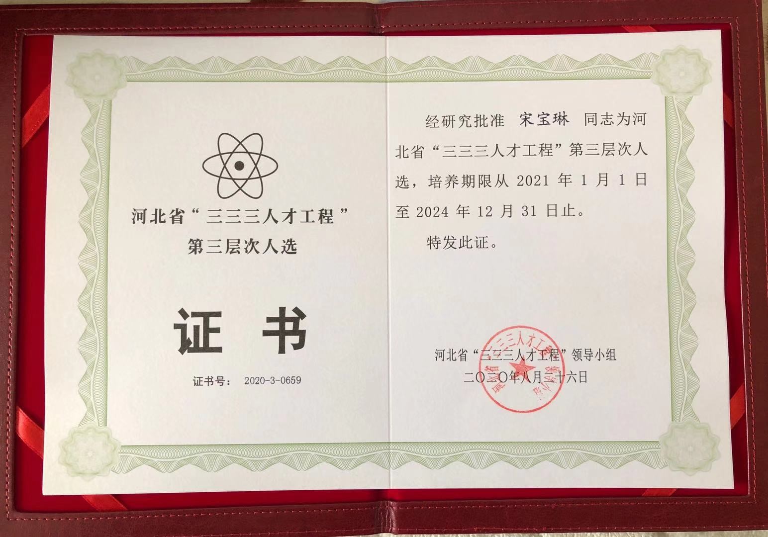 根据河北省人力资源和社会保障厅的有关规定,经河北省“三三三人才工程”领导小组评审,Beat365教师宋宝琳被评为2020年度河北省“三三三人才工程”第三层次人选。