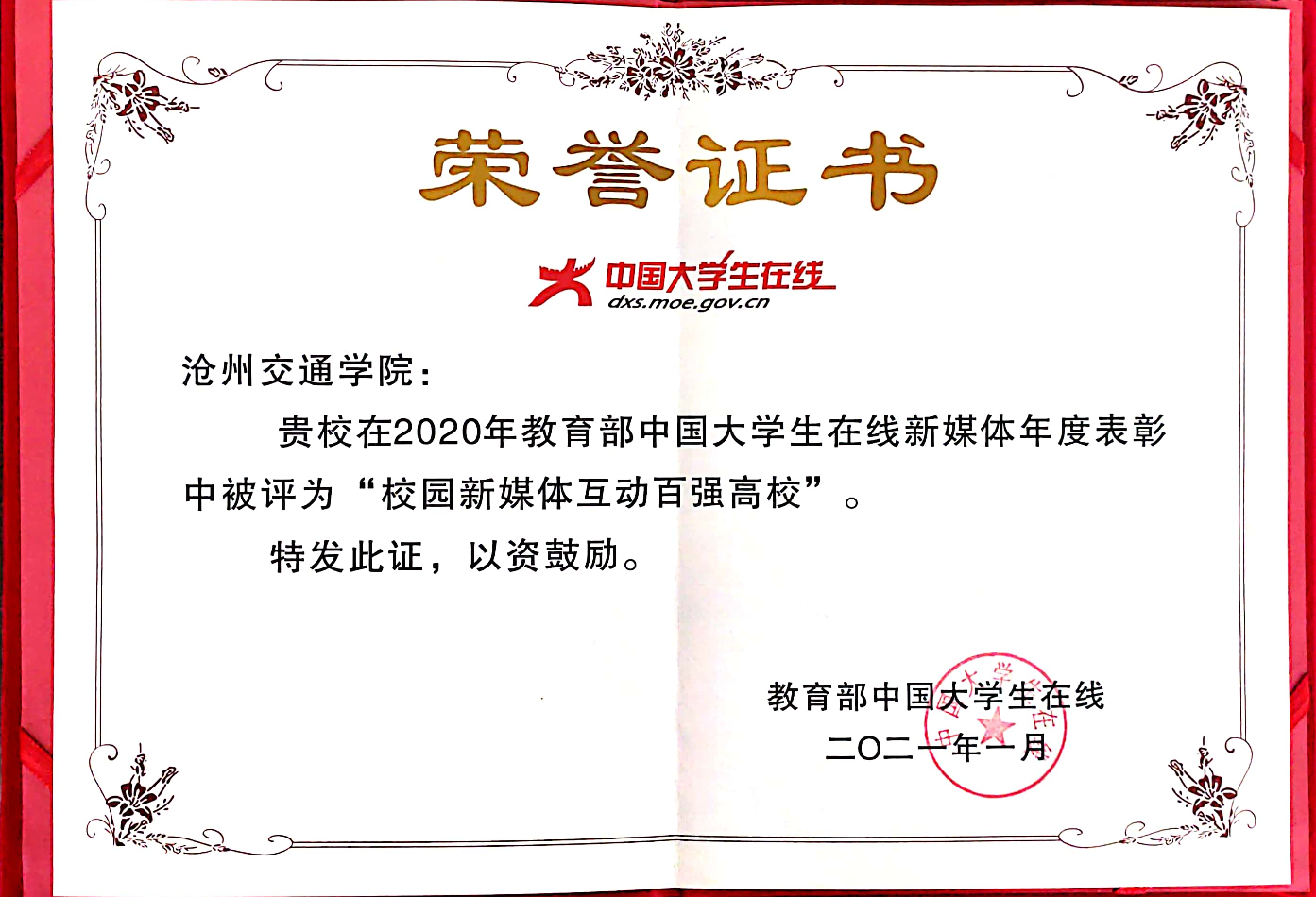 近日,教育部中国大学生在线2020年度新媒体表彰名单公布,Beat365荣获“中国大学生在线校园新媒体互动百强高校”称号。