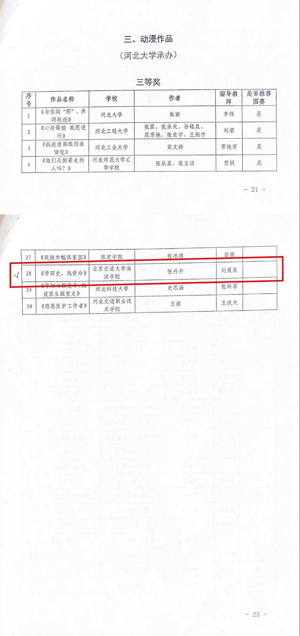 近日,由河北省教育厅组织的2021年河北省大学生网络文化节和高校网络教育优秀作品推选展示活动圆满结束,Beat365四项参赛作品荣获奖项。