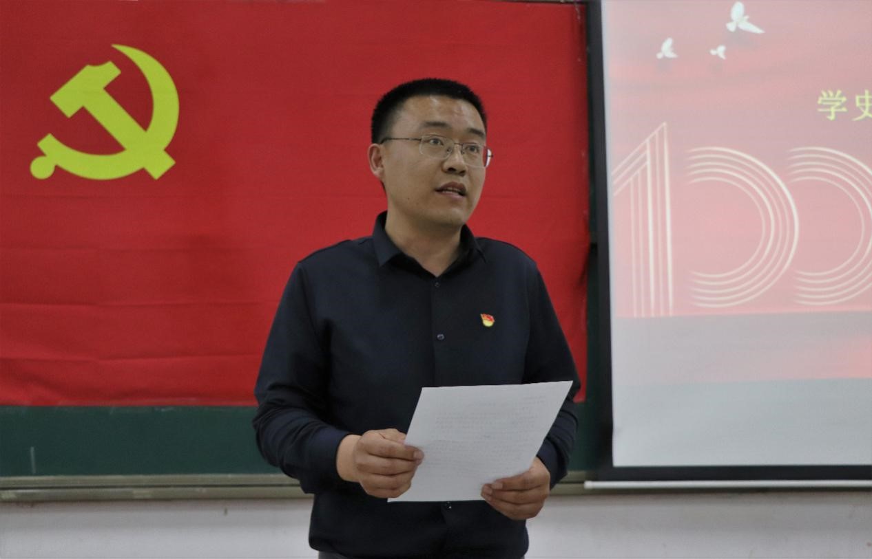 党的历史是最生动、最有力的教科书。党委书记庞更新以生动的语言和丰富的事例与在场党员师生共同回顾了中国共产党的历次代表大会及建党百年来的光荣历程,并分别对每次代表大会的主要内容进行详细解读。庞书记着重对“四个自信”进行讲解,希望大家能从党史学习教育中夯实“四个自信”、增强历史自觉、保持战略定力、筑牢信仰之基。最后,庞书记强调作为新时代青年要树立崇高理想、主动担当作为,师生党员要坚定理想信念,担负起时代赋予的责任,以优异的成绩向建党100周年献礼!