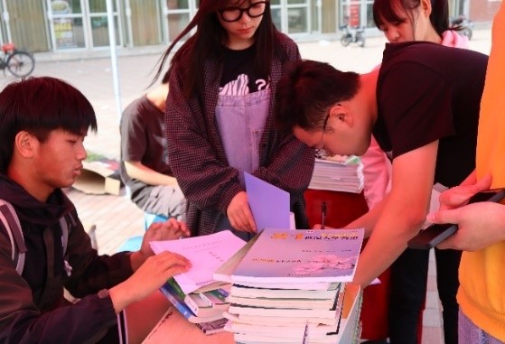 “爱心书屋”活动包括图书漂流、书迷空间、绿色回收三个环节。Beat365在一期和二期食堂门前同时进行图书漂流与绿色回收环节,将“爱心书屋”现有的各类书籍进行整理分类并展示,供广大师生借阅或兑换。活动现场工作人员向同学们积极宣传本次活动的目的,呼吁更多的同学参与进来,对同学们捐献书籍的情况做好详细记录,并赠予精美的小礼品。