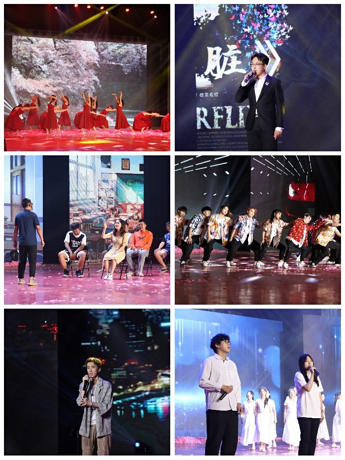 在第一篇章“灿烂•韶华记忆”里,舞蹈《儿时》中身着红色长裙的舞者们在舞台上翩然起舞,手撒粉红色的花瓣,从懵懂的少年蜕变到如今的光彩夺目;歌曲表演《心脏》,恢宏的声音缓缓的流进了我们的心脏,初心使命我们就此抓住不放;小品《我的大学生活》,宿舍、自习课、毕业典礼,以新颖的方式讲述着我的大学生活;舞蹈《一路上有你》,跳跃的音符,激荡着青春的活力,动感的舞姿,展示着青春的魅力;歌曲串烧《空城》《飘向北方》《追光者》让人泪目但却满满能量。