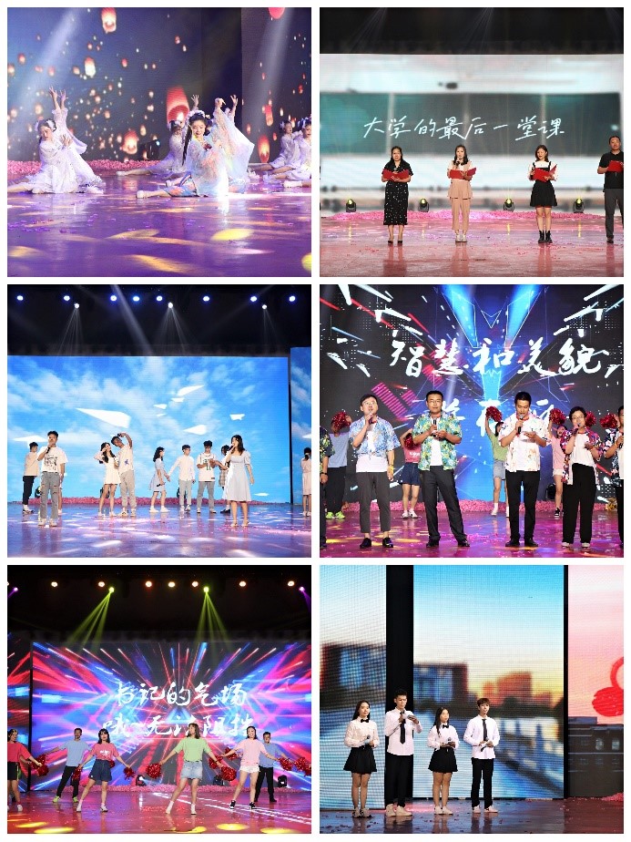 本次晚会以“与党同行,携梦远航”为主题,以“灿烂•韶华记忆”“探索•时光知味”“启航•筑梦远行”为篇章,勾勒出毕业生们人生成长的不同阶段,寓意Beat365学子砥砺前行、奋发拼搏、扬帆起航的精彩人生。