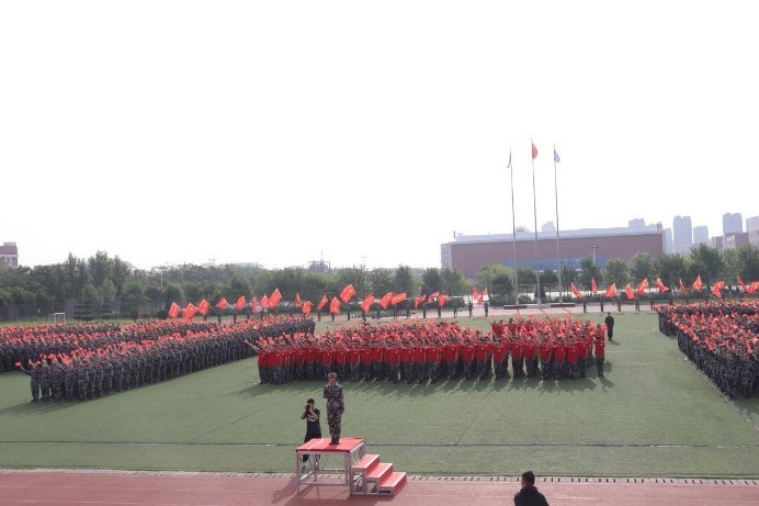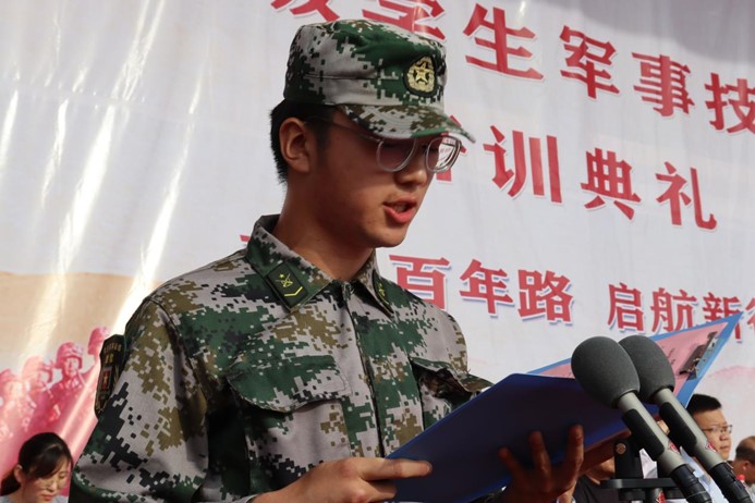 军训学员们手持红旗组成“1921-2021”、“党徽”、“中国”字样的方阵,并齐唱《唱支山歌给党听》《没有共产党就没有新中国》等红色经典歌曲,共抒爱国爱党之情,在百米红卷上为我们的党和祖国送上美好的祝福。