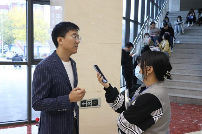 2022届毕业生张冬表示非常感谢学校举办的双选会,为毕业生和企业之间搭建桥梁。同时,他提到三年的学生工作对自身能力的提升也是一种就业优势。他希望学弟学妹们在专注学习的同时,也可以多参加一些学生活动提升自身能力,为自己的未来添砖添瓦。