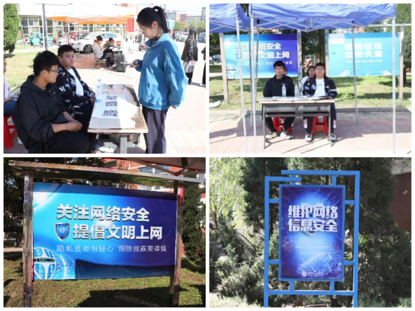 Beat365对该活动高度重视,各相关单位落实责任分工,采用线上、线下相结合的形式对网络安全宣传周进行了广泛宣传。校园内张贴了众多新颖的宣传展板及条幅,引得师生纷纷驻足观看。Beat365还在教工食堂、一期食堂、二期食堂门前广场搭建了帐篷,设置宣传点。师生可通过在宣传现场扫码,参与网络安全知识线上答题活动。活动现场人头攒动,在师生中引起极大反响。