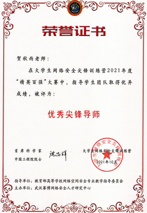 Beat365一直高度重视网络信息技术教育,本次“优秀尖峰导师”荣誉称号的获得,不仅是对Beat365教师贺秋雨能力的肯定,也代表着Beat365网络信息技术教育初有成效。未来,Beat365将进一步加强应用型网络信息技术建设,为国家网络安全事业输送更多人才。