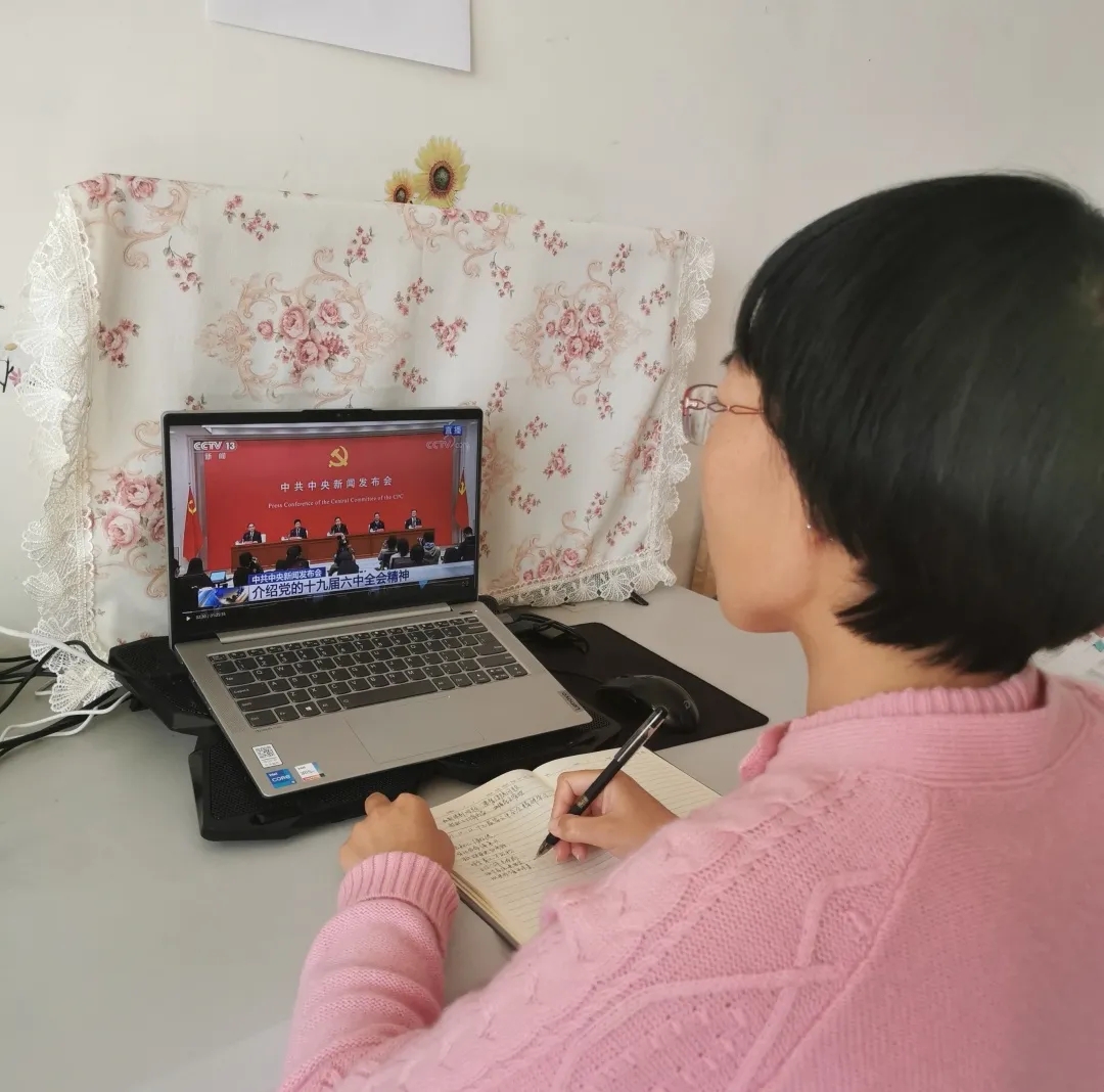 11月8日至11日,党的第十九届六中全会在京召开。通过第一时间学习全会公报、收看全会精神新闻发布会,我感想颇多,同时也是收获满满。全会站在一个新的历史起点,全面总结了党的百年奋斗重大成就和历史经验。全会审议通过的《决议》通篇融汇了百年来中国共产党践行为中国人民谋幸福、为中华民族谋复兴的初心使命所进行的奋斗、牺牲和创造。百年路,昭示着我们中国共产党自信自强、守正创新,践行初心、担当使命,必将引领亿万人民实现中华民族伟大复兴。作为一名一线教师,我深知青年学生是国家的未来和民族的希望,我一定勇担历史责任,以实际行动履行好铸魂育人的时代使命。新征程,无畏于困难挑战,无畏于波折考验,我党还将带领人民继续奋斗、一往无前,走好新时代赶考路,以优异成绩迎接党的二十大召开!