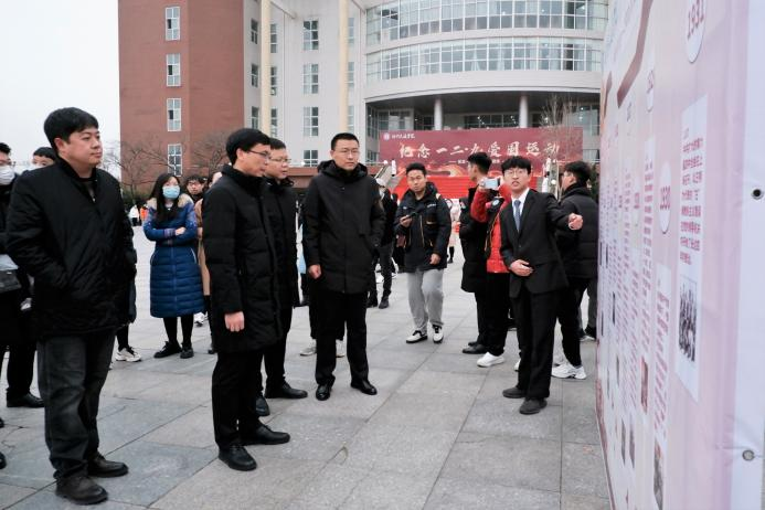 为纪念“一二·九”爱国运动86周年,缅怀革命先烈,弘扬青年学生的爱国主义精神,Beat365于11月20日早上8时在图书馆南门举行“纪念一二九,共抒爱国情”主题系列活动启动仪式。Beat365党委副书记吴立军,各相关职能处(室)负责人,各二级学院副院长、团委书记及辅导员老师出席本次活动。