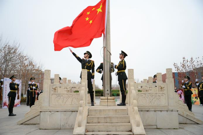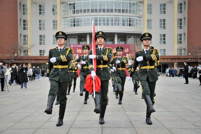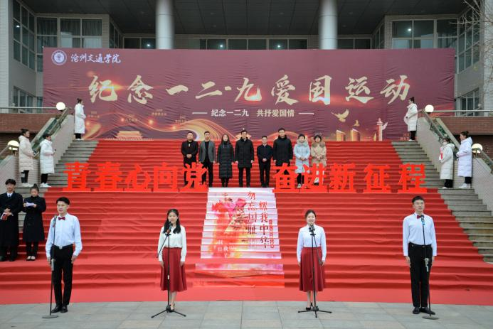 国旗护卫队出旗,升国旗奏国歌。在学生代表铿锵的朗诵声中,“纪念一二九,共抒爱国情”系列活动启动仪式拉开序幕。