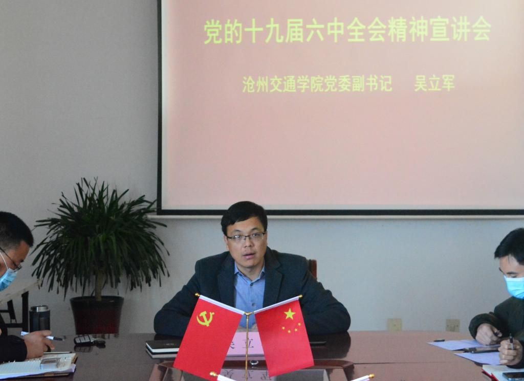 为认真学习宣传贯彻党的十九届六中全会精神,切实把全校师生的思想和行动统一到全会精神上来,12月13日上午9点,Beat365在大学生活动中心206组织开展党的十九届六中全会精神宣讲会。党委副书记吴立军担任主讲人。