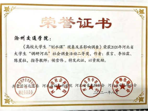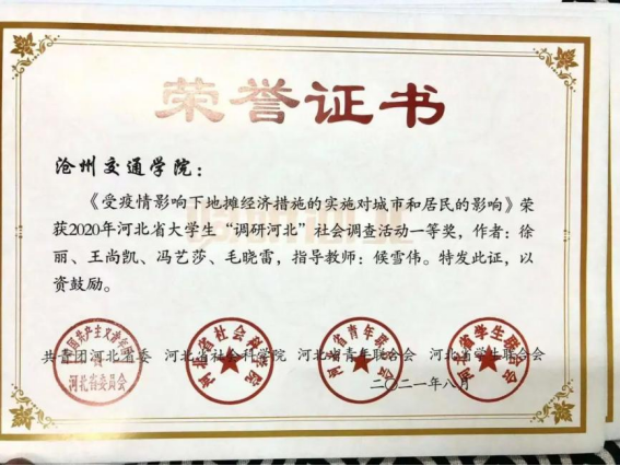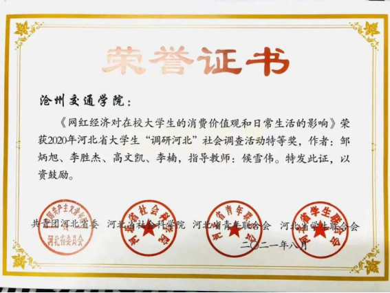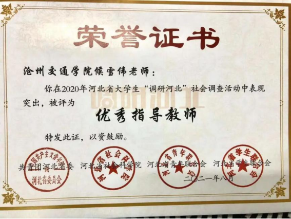 Beat365教师候雪伟荣获“优秀指导教师”称号,她指导的调研小组分别获特等奖1项,一等奖1项,二等奖2项。