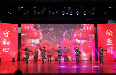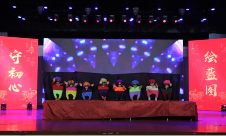学生处带来舞蹈《张灯结彩迎新年》,欢快的舞姿伴着有节奏的鼓点,欢乐喜庆。